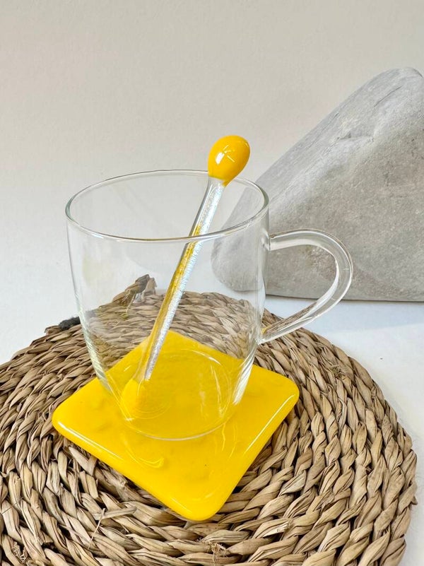 * Omdat elk stuk glas met de hand wordt gesneden hebben de lepeltjes en onderzetters onderling kleine variaties. Deze kleine verschillen maken ze uniek en speciaal.